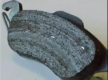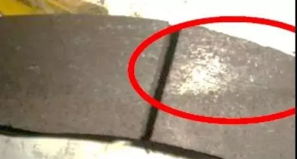 由于制動過載導(dǎo)致踩剎車有異響,出現(xiàn)制動無力,剎車片表面發(fā)亮、有釉面和掉渣等情況。