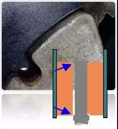 由于剎車盤使用過度、邊緣有臺階、與剎車片不匹配或摩擦面積比原廠大等原因,造成剎車片摩擦材料邊緣磨損較中間部分嚴重,從而導(dǎo)致制動高頻異響,制動踏板抖動,以及摩擦材料異常磨損。